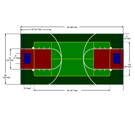 Flex Court Canada recommande une dalle de 4" d'épaisseur de Béton, d'Asphalt, ou de Macadam. Consultez nos Directives pour les Dalles pour plus d'information.Choix de la Tuile