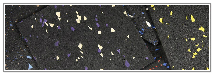 RubberFlex™ rubber flooring is ideal for high-wear and high-impact spaces that require maximum subfloor protection. Home gyms, weight rooms, basements and restrooms all benefit from durable rubber tiles. RubberFlex™ offers outstanding impact resistance, excellent slip resistance, underfoot comfort and can easily be trimmed to fit any space. RubberFlex™ is the recommended choice for high-traffic active spaces, featuring a dense rubber core that provides excellent, high-impact durability and superior slip resistance in wet or dry conditions and combining anti-fatigue and ergonomic comfort properties with very low maintenance. RubberFlex™ is available in solid black, 6 different EPDM color fleck designs (red, blue/light gray, light gray, green, blue and eggshell) or can be custom made to match specific color pallets.