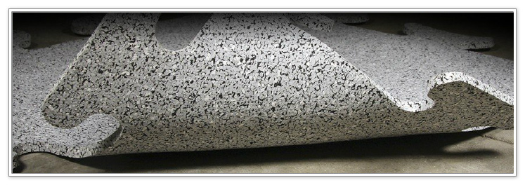 RubberFlex™ interlocking tiles (18", 24", 36" or 48" sizes) lay flat and have tight tolerances for no-gap easy installation and require absolutely no adhesives. Thicknesses range from 2mm to 12mm